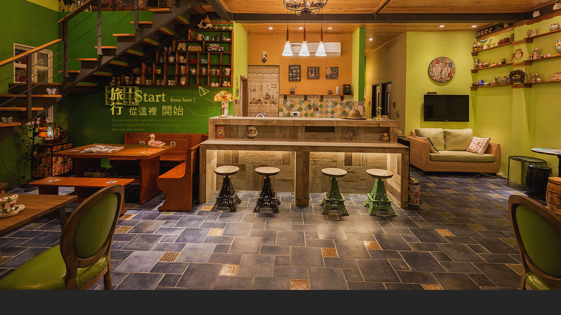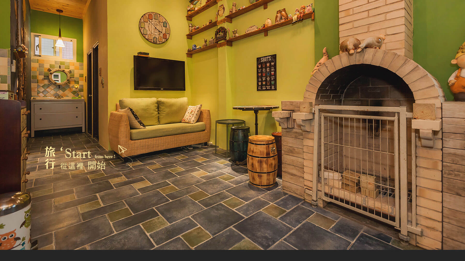 這裡可以發現裡外都擺設許多貓頭鷹,全是主人的收集品,貓頭鷹象徵幸福與智慧,更是深情的愛情鳥,她們融入環境使園區顯得非常天然。